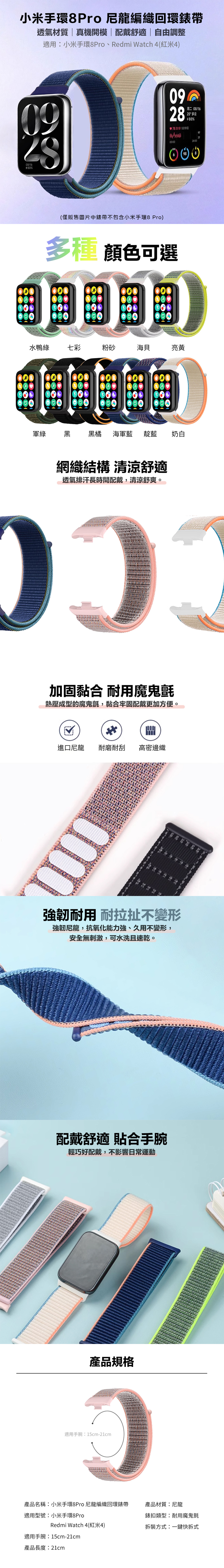 📍小米手環8Pro 尼龍編織回環錶帶