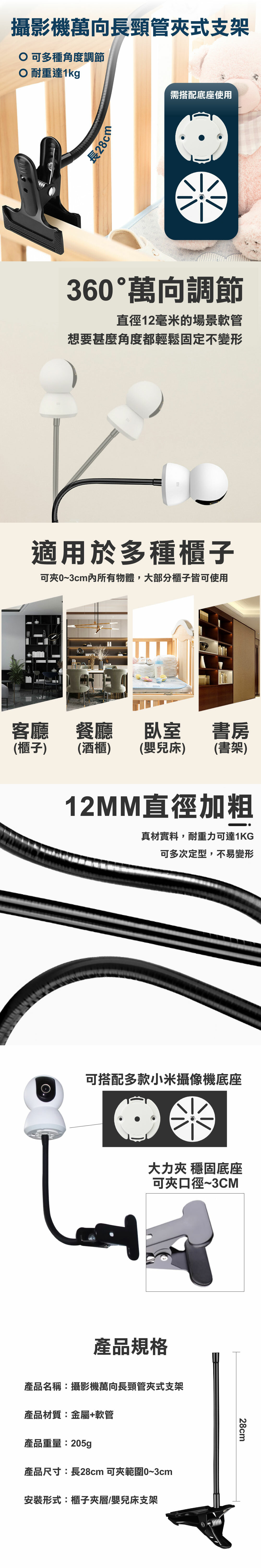 📍攝影機萬向長頸管夾式支架